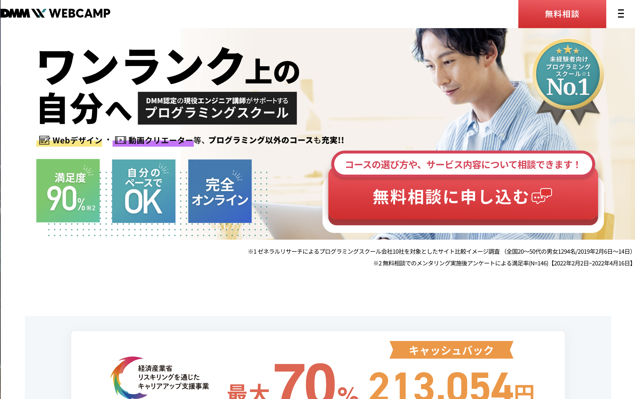 「プログラミングスクールは高い」というイメージを持つ人も多いですが、DMM WEBCAMPでは国の制度を利用できます。